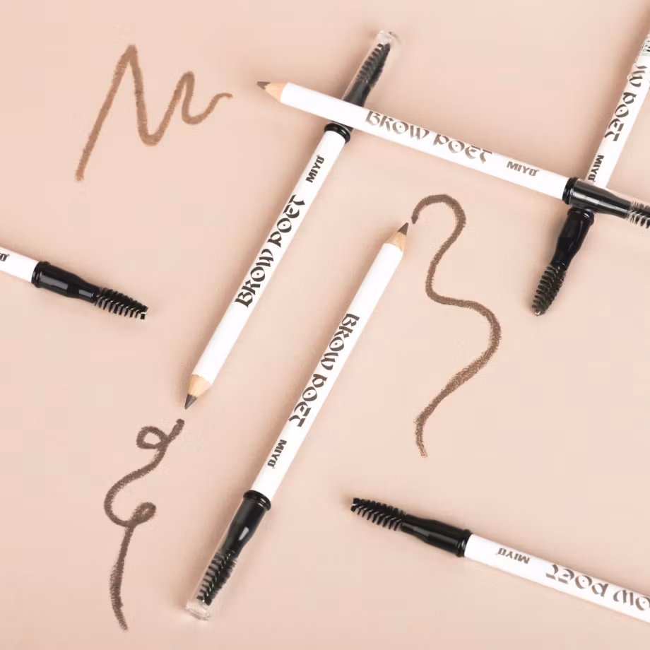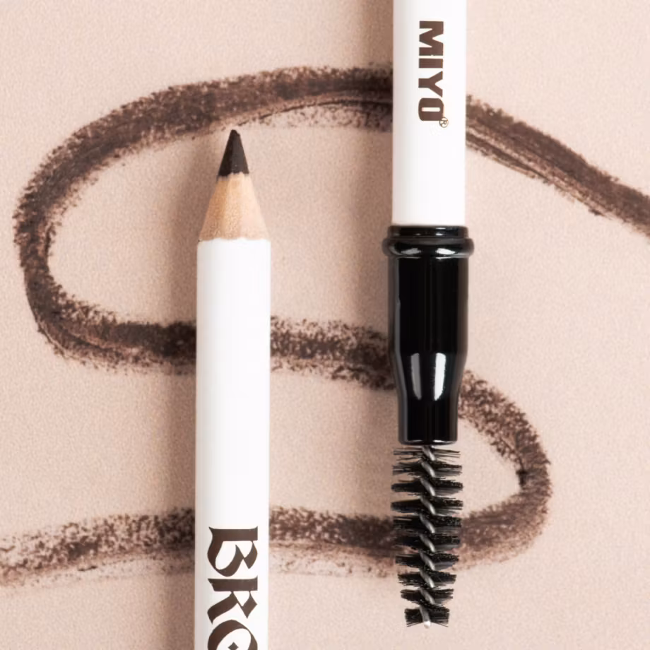 Vegansk ögonbrynspenna med tillhörande borste.