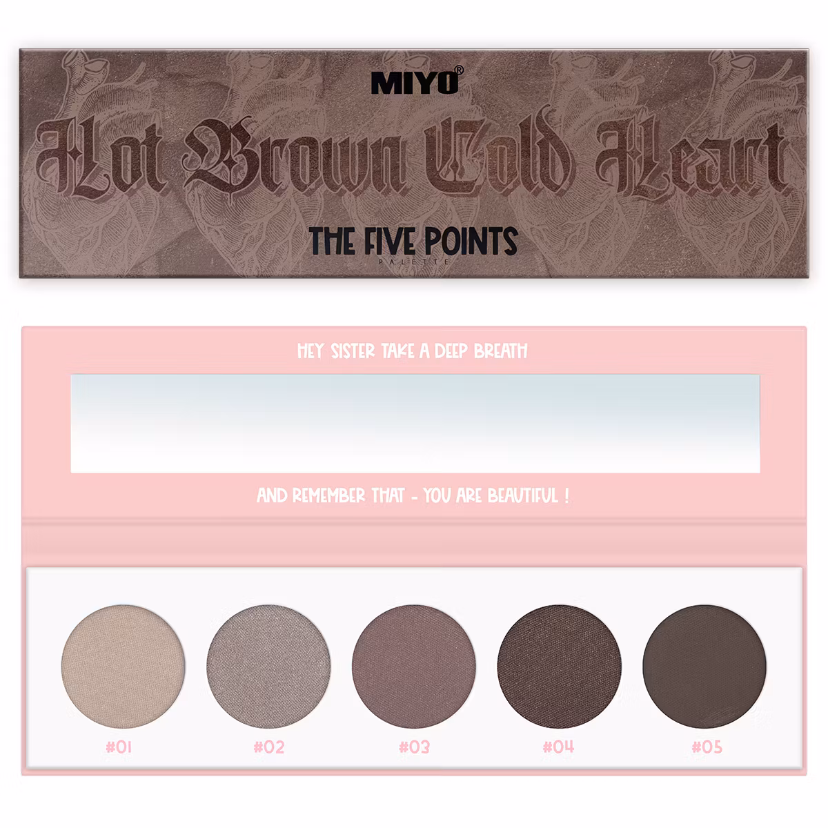 En palett av ögonskuggor som består av fem perfekt matchade nyanser. Kombinera de olika färgerna för att skapa en dag- och/eller kvällsmakeup.