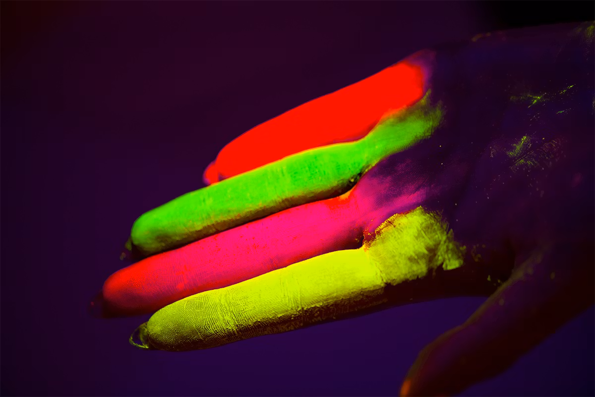 Neonfärgad ögonskugga som lyser upp i UV ljus.