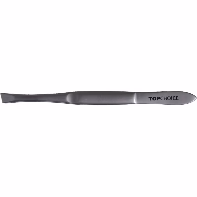 Pincett med ergonomiskt handtag och snedställda spetsar.